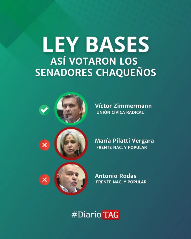 Es preciso mencionar que, dos de los tres senadores chaqueños votaron en contra de la medida (María Pilatti Vergara, Antonio Rodas) y solo Víctor Zimmermann le dio el visto bueno a la iniciativa.