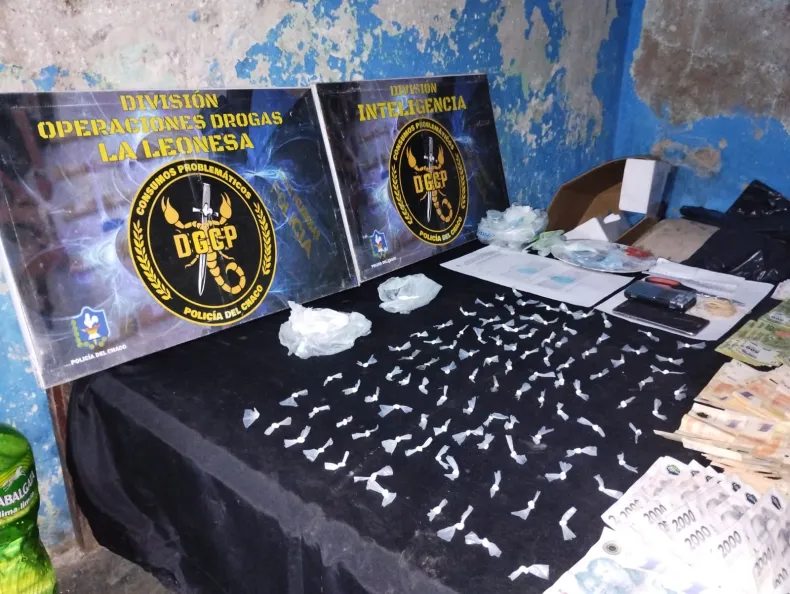 Luego de una serie de investigaciones, el personal de la fuerza provincial llevó a cabo dos allanamientos en simultáneo en la localidad de La Leonesa. En el sitio logró incautar más de medio millón de pesos y cocaína fraccionada y lista para su venta. Los operativos tuvieron lugar ayer por la noche.