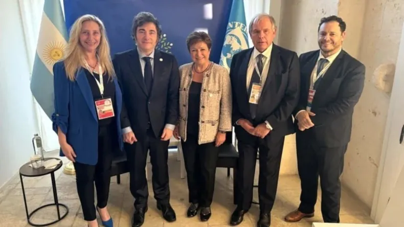 En el marco de su participación como invitado a la cumbre del G7, el presidente Javier Milei se reunió este viernes con la directora del Fondo Monetario Internacional, Kristalina Georgieva, con quien volvió a conversar sobre el plan económico que lleva adelante y la meta del Gobierno de liberar el cepo, algo que también reclamó la entidad financiera. "Fue un muy buen encuentro", detallaron.