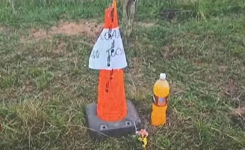 "Para Loan, no tocar", reza el papel escrito con letras negras que está pegado en los conos anaranjados. A los pies de la posta, que se encuentran cada 200 metros, hay varios chupetines y caramelos y una botella con bebida. Se trata de un recurso para que el pequeño no se deshidrate hasta que lo encuentren.