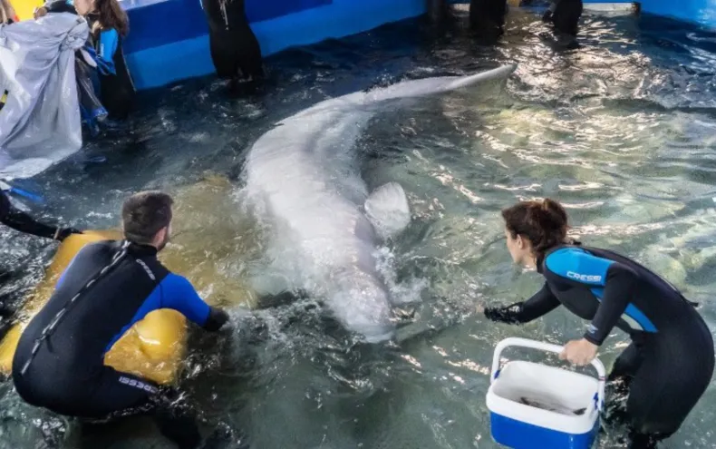 Especialistas en mamíferos marinos del Oceanogràfic de Valencia, junto con expertos del Georgia Aquarium y SeaWorld, llevaron a cabo una operación internacional para rescatar a dos belugas del Delfinario NEMO de Járkov, Ucrania, y trasladarlas al acuario valenciano.