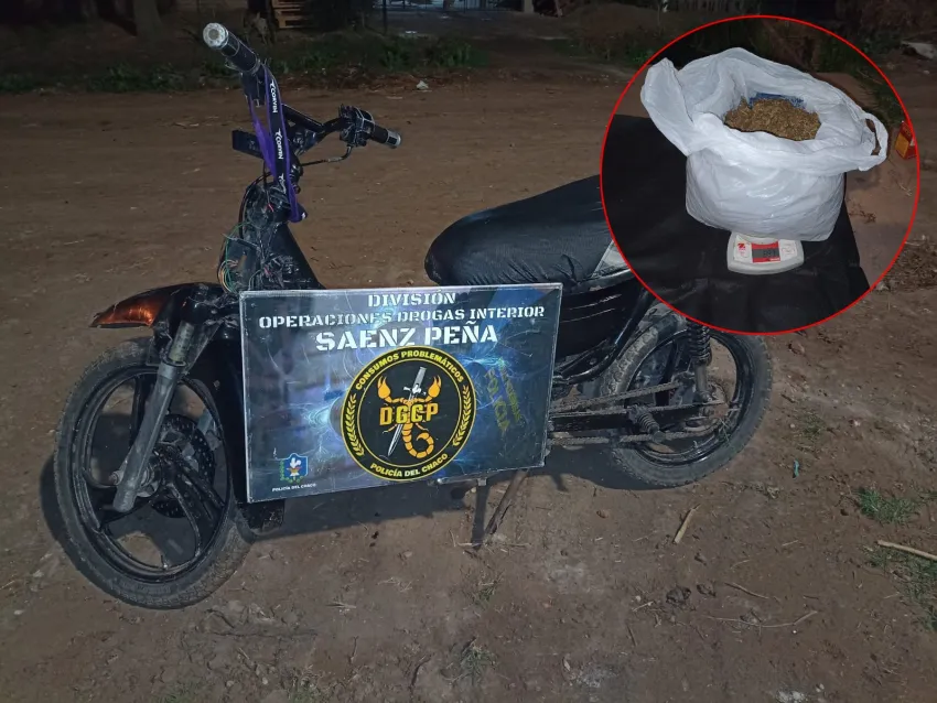 Efectivos de la División Operaciones Drogas Interior Sáenz Peña procedió al secuestro de una bolsa de color blanca que contenía en su interior una sustancia vegetal verde amarronada con aroma característico de marihuana.
