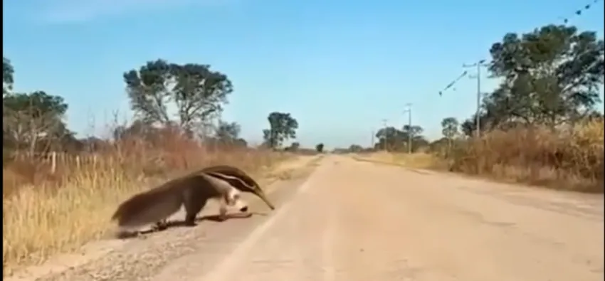 Mediante un video difundido en redes sociales, se logra apreciar como un oso hormiguero cruza un camino en El Impenetrable chaqueño. Cabe resaltar que este animal que es un mamífero característico de la región del Gran Chaco, se encuentra en peligro de extinción.