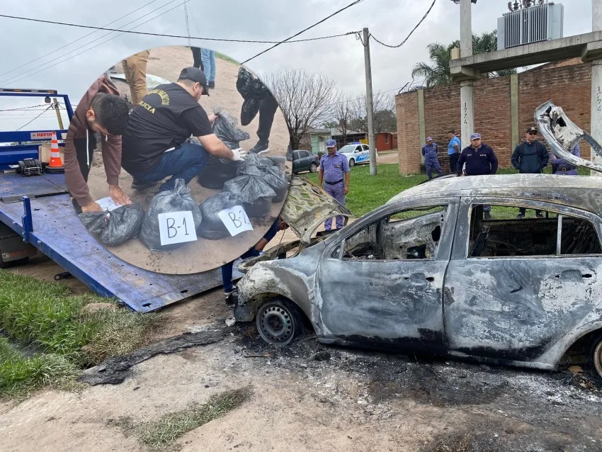 Apagaron las llamas de un auto incendiado y descubrieron que adentro había más de 75 kilos de marihuana
