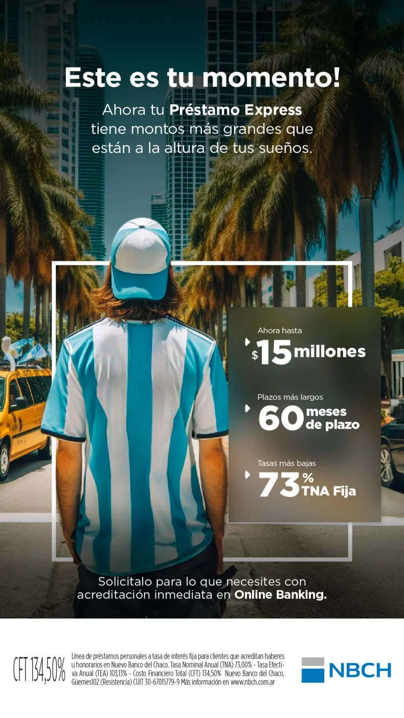 Nuevo Banco del Chaco volvió a habilitar a línea Tu Préstamo Express, con montos de hasta $ 15.000.000 y plazos de hasta 60 meses. La gestión es 100% online y acreditación inmediata desde la plataforma NBCH24 Online Banking. Esta línea de crédito tiene libre destino y tasas fijas.