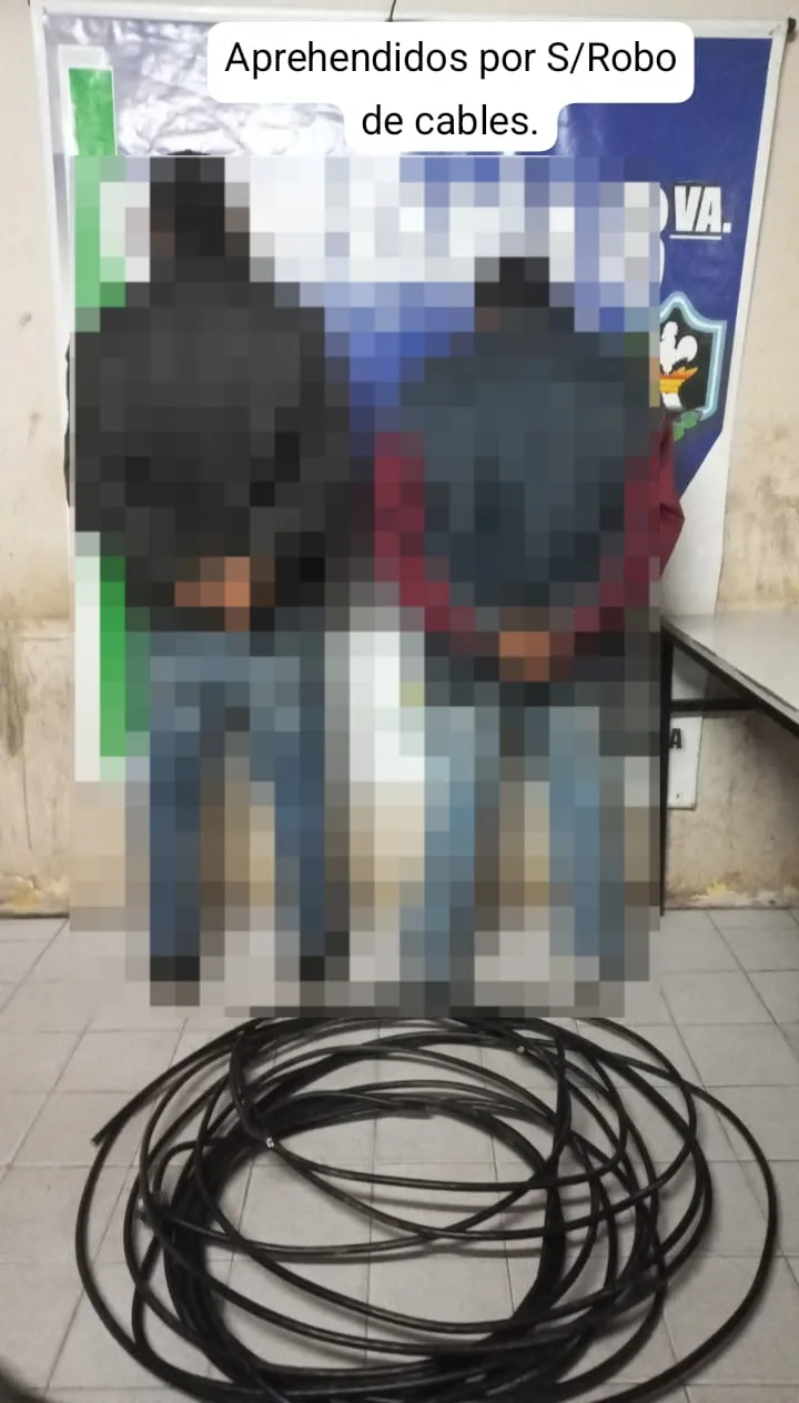 El incidente ocurrió alrededor de las 17 horas en la calle Bélgica al 1000, en la esquina con Padre Distorto. Al ver a los agentes, los sospechosos intentaron huir, pero fueron alcanzados y aprehendidos. Los policías incautaron más de 20 metros de cable en posesión de los hombres.