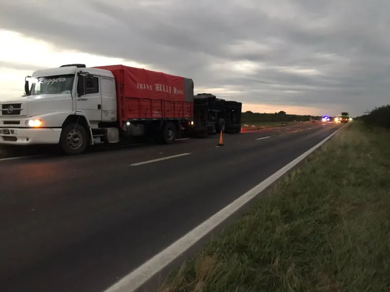 Finalmente, se espera una grúa para remover el camión y el acoplado de la ruta, mientras el tráfico sigue siendo controlado para evitar mayores inconvenientes.
