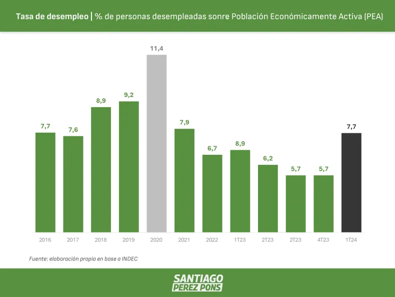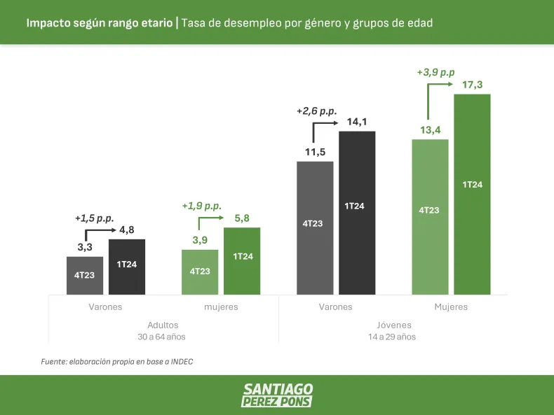 "Con la economía desplomándose las condiciones para la inclusión laboral de nuevos trabajadores también se complejizan", expresó el economista. A su vez, destacó que "el desempleo juvenil supera ampliamente el promedio nacional", enfatizando la urgencia de políticas públicas dirigidas a ese segmento.
