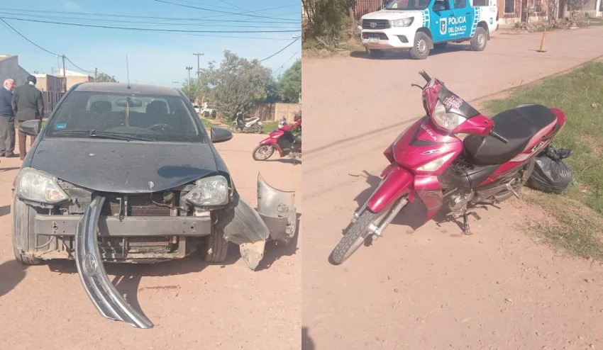 Accidente entre una moto y un auto en Charata: dejó a una mujer herida