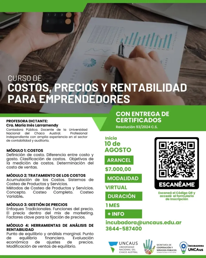 UNCAUS abrió inscripciones para un Curso de costos, precios y rentabilidad para emprendedores