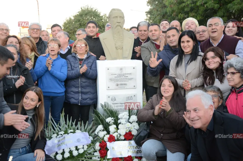 Tras las sentidas palabras para recordar a Alem, se sacaron una foto con su busto y entonando la marcha radical.