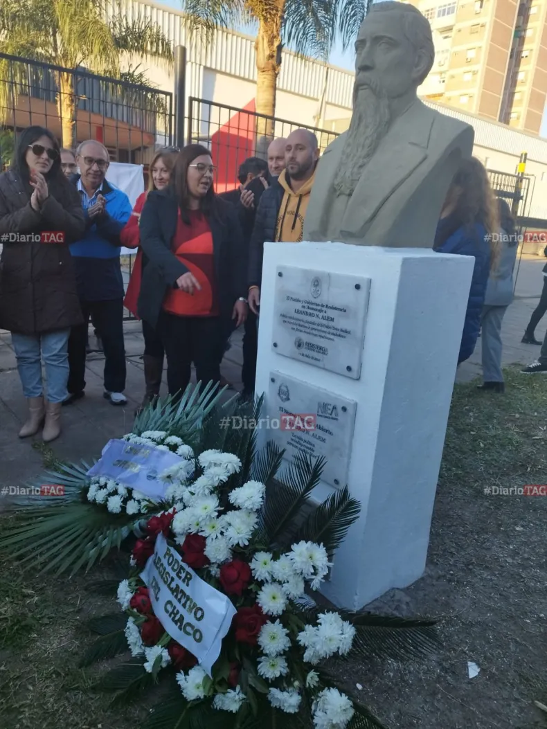 Durante la ceremonia, colocaron ofrendas florales en la base del busto, ambas enviadas por el Poder Legislativo del Chaco y el Comité Capital de la UCR. Fue un una oportunidad para recordar y honrar la vida y obra de Alem, quien falleció el 1° de julio de 1896, dejando una huella imborrable en la historia política del país.