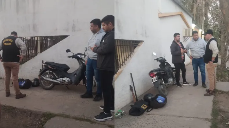 Además, la policía confiscó del lugar una escopeta calibre 16 desarmada, un bolso negro con una remera blanca, un suéter beige, un par de zapatillas y un pantalón de gabardina marrón, además de una motocicleta Honda BIZ, 125 cc, y un casco protector negro sin marca visible. El procedimiento se realizó en presencia de un testigo hábil.