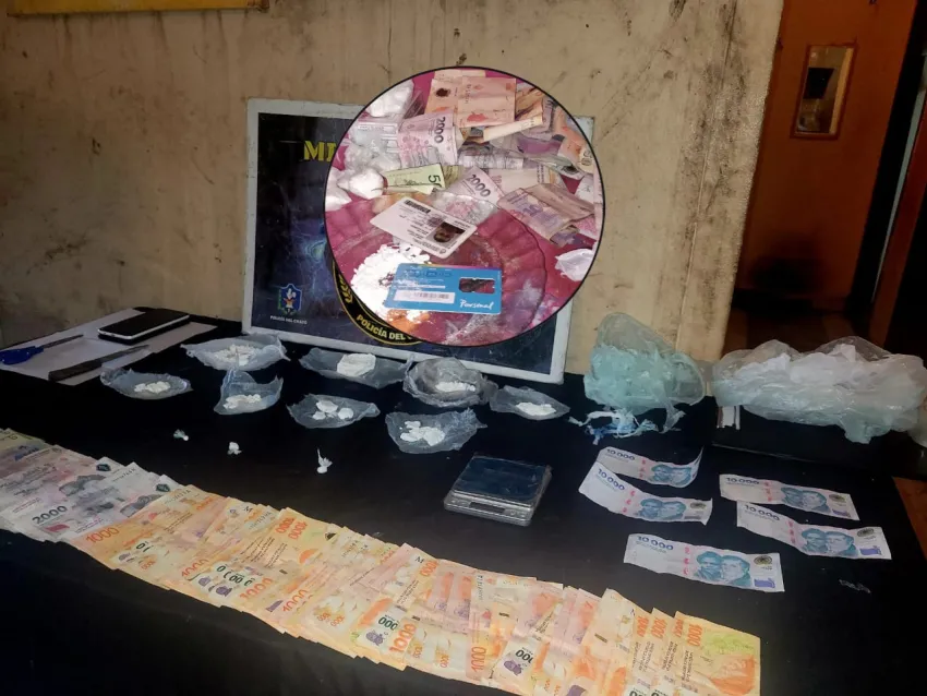 Asimismo, secuestraron $ 124.000, una tijera, un cuchillo, varios recortes de polietileno, una balanza digital y un celular.