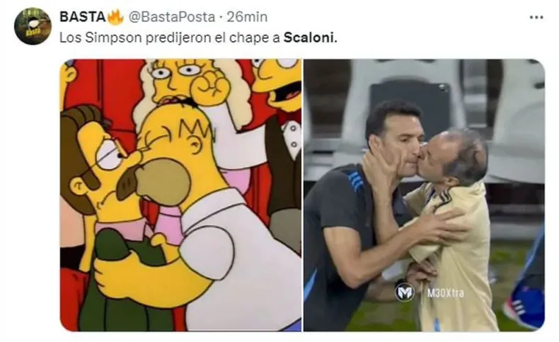 Además, también empezó a circular un hecho curioso en los festejos del encuentro, donde un ayudante técnico de Scaloni casi le brinda un beso en la boca al DT.