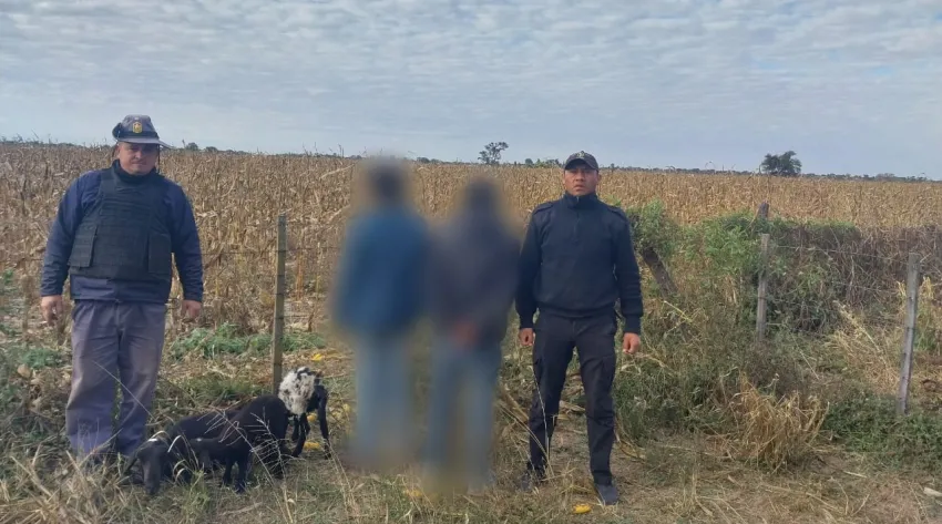 Se realizó un amplio rastrillaje, y al estar ubicado sobre el interior del campo; previo pasar al otro lado de un monte de gran vegetación logran observar a dos sujetos intentando llevarse los animales ovinos. Los efectivos previos identificarse logran la detención de dos personas que ante el accionar policial intentaron darse a la fuga.