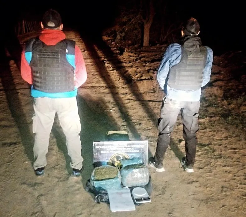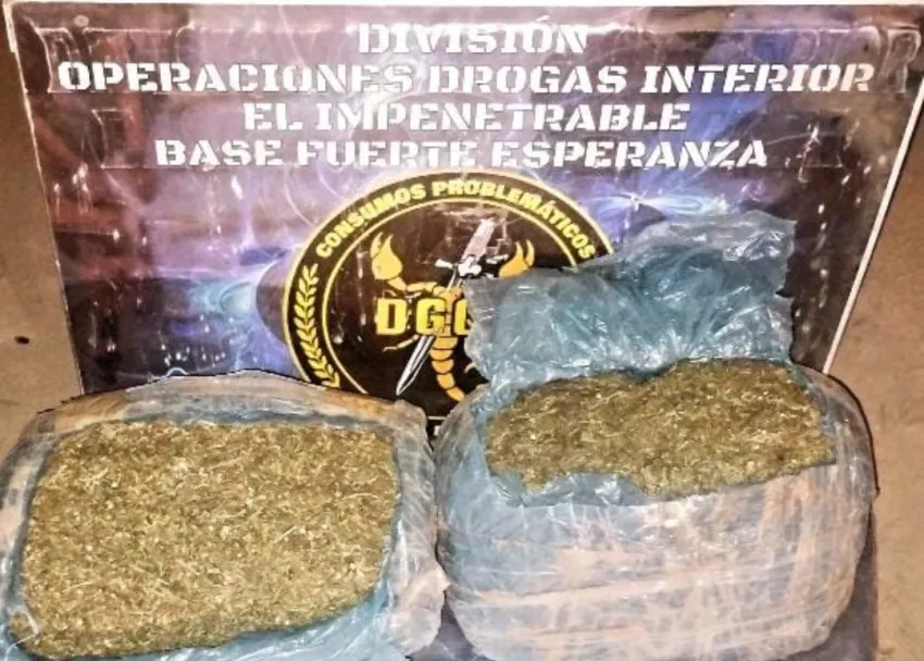 Al inspeccionar estos paquetes, el personal policial comprobó que se trataba de 2 bolsas de polietileno envueltas en cinta de embalar, conteniendo cogollos de marihuana, cuyo pesaje total arrojó la cantidad de 4 kilos 81 gramos.