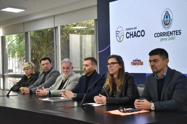 Participaron de la conferencia de prensa el presidente de Lotería Chaqueña, Lucas Apud Masín; el secretario de Asuntos Estratégicos, Marcos Resico; la ministra de Educación, Sofía Naidenoff; la ministra de Desarrollo Humano Carina Botteri Disoff; en nombre del directorio de la lotería de Corrientes, José Humberto Gómez Colombo y el vocal oficial de Lotería Chaqueña, Juan Chaussivert.