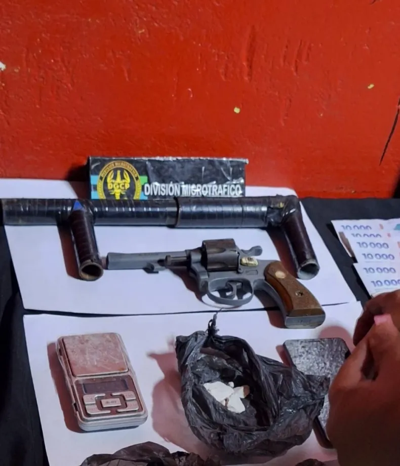 Además, incautaron un revólver calibre 32 y una "tumbera". Un ciudadano de 29 años fue detenido y notificado en la causa por "Supuesta Infracción a la Ley N° 23.737 de Estupefacientes".