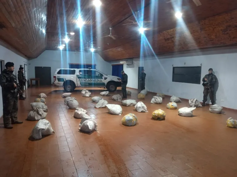 La droga, que se encontraba oculta en 32 bolsas plásticas y de arpillera, fue detectada durante patrullajes rutinarios por funcionarios de la Sección "Montecarlo" y la Unidad de Operaciones Especiales en Monte "Bernardo de Irigoyen".