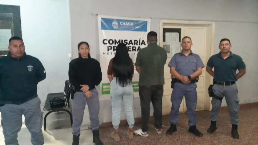 El personal policial intentó detener el vehículo, cuyos ocupantes ignoraron la orden de alto y se dieron a la fuga por calles céntricas. La persecución controlada culminó en la calle Fortín Loma Negra N° 285, donde los agentes lograron reducir y detener a F.D.I de 23 años, domiciliado en Barranqueras, y a S.V.S de 33 años, residente en el barrio 240 Viviendas de Resistencia.
