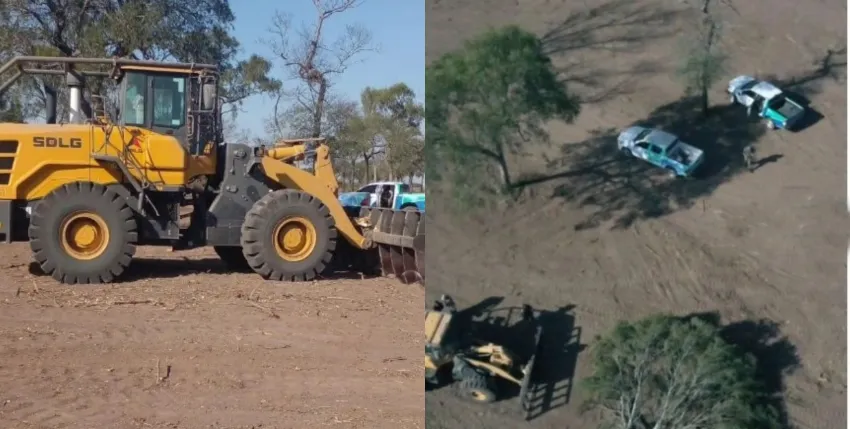 Se procedió al secuestro de una cargadora con pala frontal tipo rastrillo marca SDLG, modelo L985F, potencia 240 Hp. La máquina secuestrada fue trasladada a una Delegación Forestal. Se labraron las actas correspondientes por infracción al Régimen Forestal Ley 2079-R.
