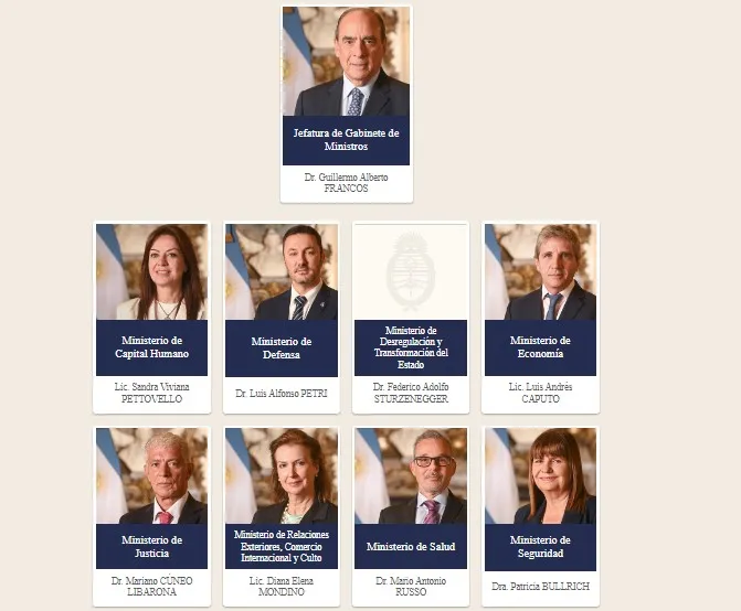 Según el sitio, en el primer lugar se puede observar a la imagen del Presidente y, seguidamente, como segunda figura más importante, a su hermana Karina quien ocupa el cargo de secretaria general de la Presidencia, pero no la figura de la vicepresidente.