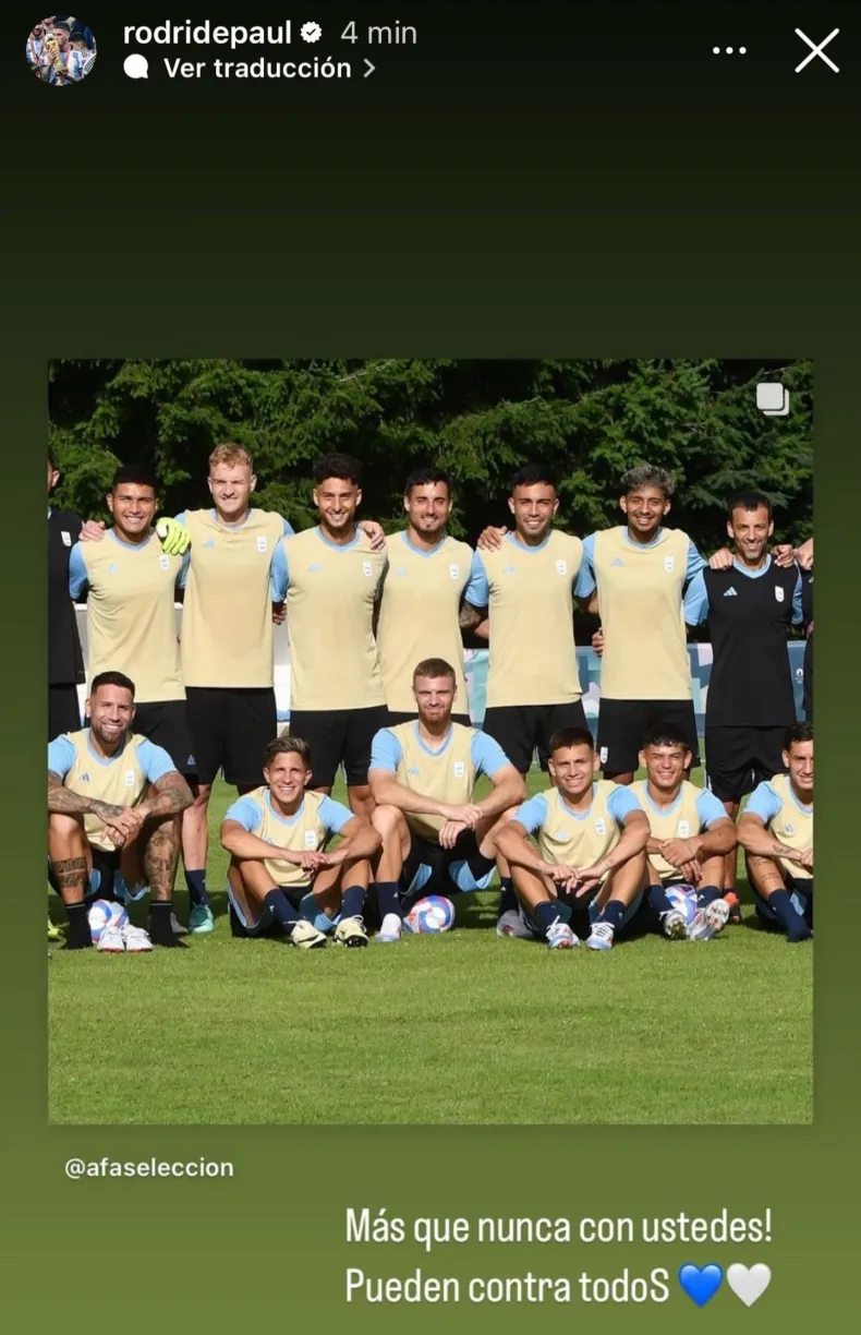Rodrigo De Paul también subió un mensaje tras el partido. Minutos después de la derrota de la Selección argentina Sub-23, De Paul también se manifestó en sus redes sociales. "¡Más que nunca con ustedes! Pueden contra todos", expresó el mediocampista campeón del mundo y bicampeón de América.