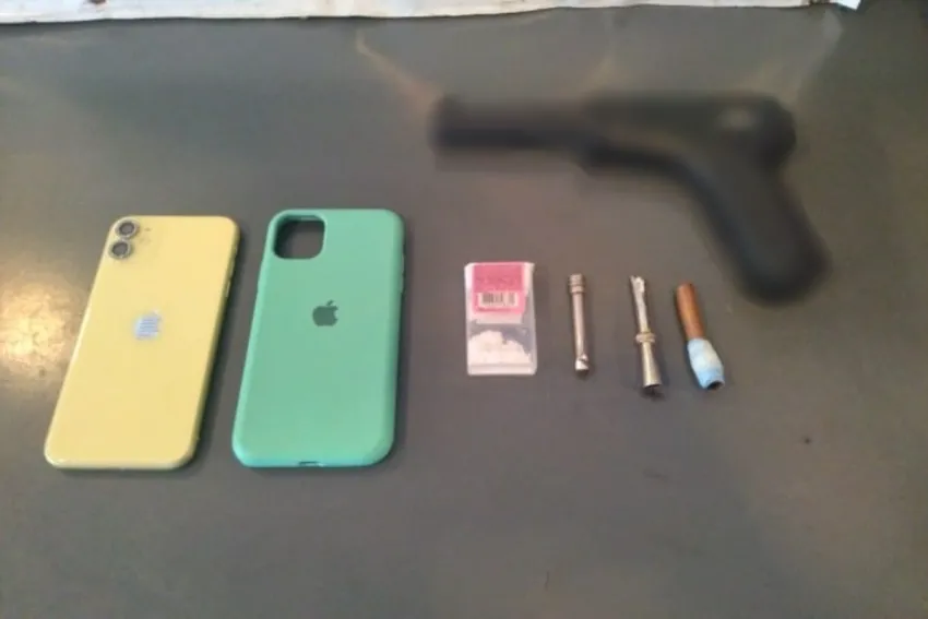 Al palpar entre sus prendas de vestir, el mismo tenía en su poder una réplica de arma de fuego, un celular marca iPhone y varias partes de metálicas de una bombilla, los cuales no supo acreditar como de su propiedad.