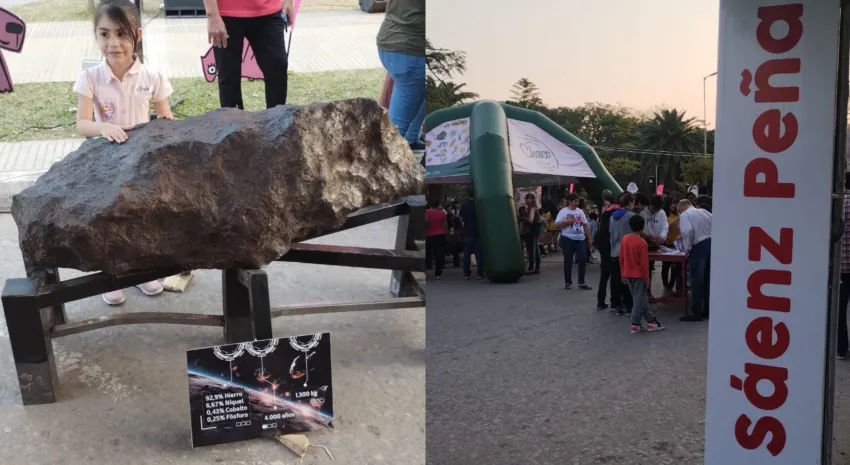 Los meteoritos llegaron a Sáenz Peña en el mediodía de este miércoles y estuvieron en exhibición toda la tarde en la plaza central de la ciudad para que la comunidad y sobre todos los niños lo puedan apreciar. Paralelamente hubo otras actividades como un planetario inflable, que brindo varias funciones cada 30 minutos.