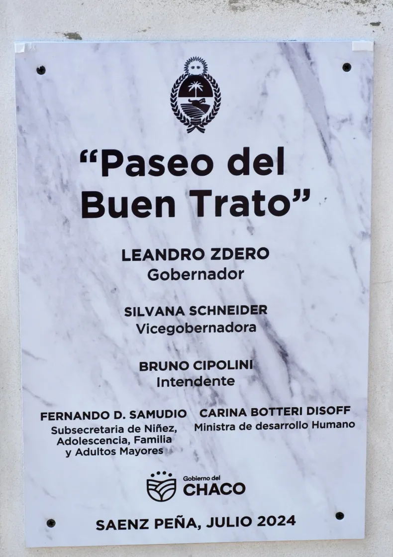 Por su parte, la subsecretaria de Adultos Mayores saenzpeñense, Ana Bonillo, afirmó que "para nosotros es un honor poder contar con la presencia de ustedes y que piensen en este grupo etáreo de adultos mayores", remarcando a su vez que "es bueno que desde Provincia se piense en un espacio más de recreación, esparcimiento y ampliando, ya que este es el primer paso donde hoy se inaugura el paseo del ´Buen Trato´ hacia el adulto mayor; estamos al lado de nuestro adultos mayores y queremos esa mirada diferente hacia ellos".