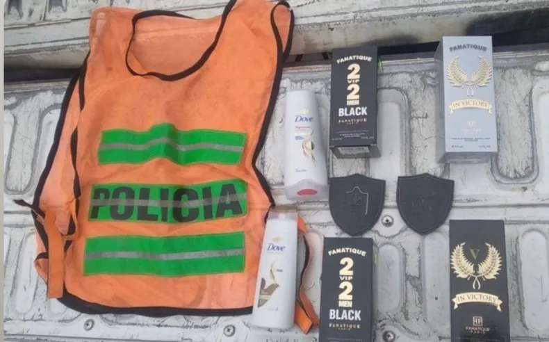 Por ello, procedieron al secuestro de varios perfumes, un acondicionador, un shampoo y un chaleco refractario con la inscripción de "policía".