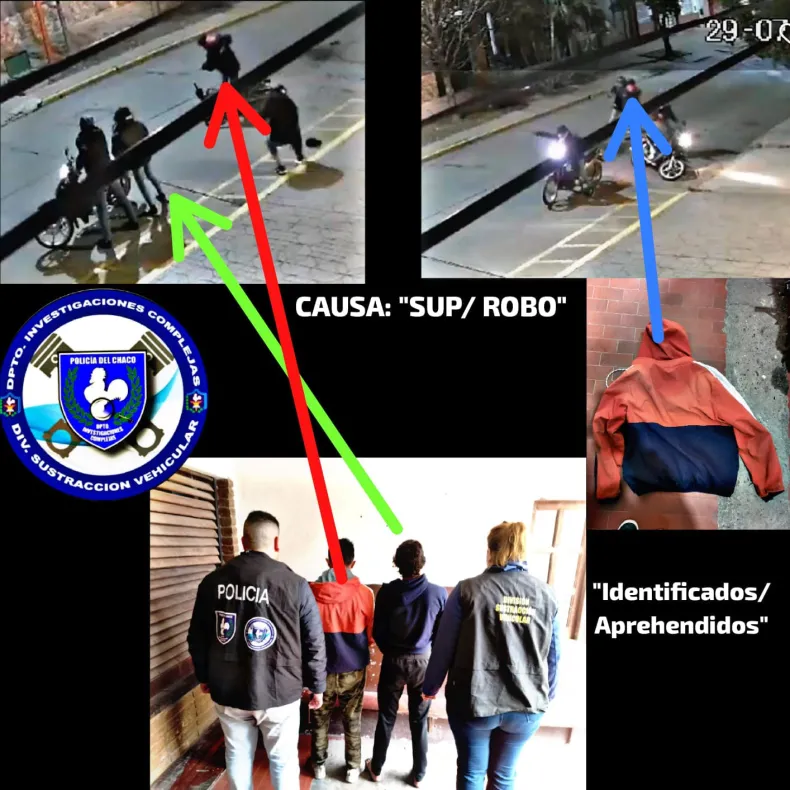 El hecho fue denunciado por una de las víctimas quien luego aportó videos y averiguaciones propias en las que encontró a dos de los delincuentes en Facebook, que serían pareja y que el hombre tenía la misma campera utilizada durante el robo.
