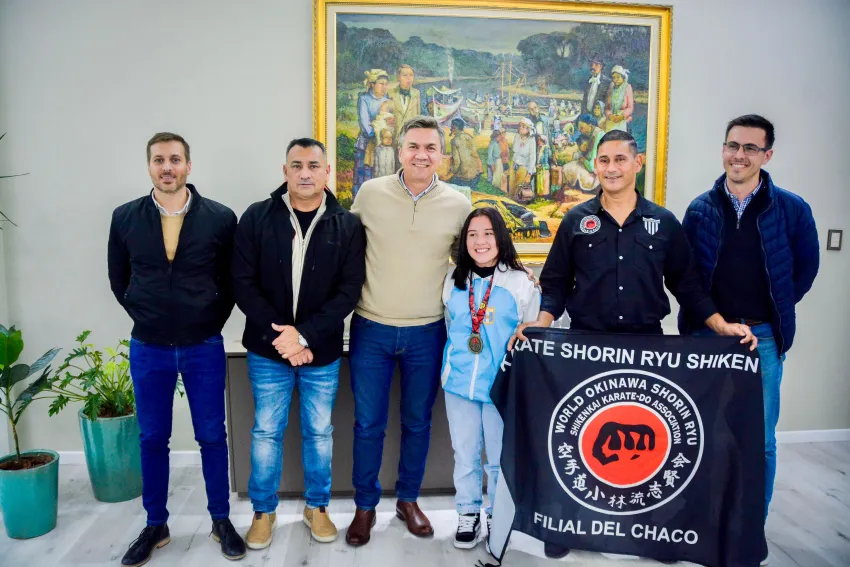 El gobernador Leandro Zdero recibió a la karateka chaqueña Melani Alegre, quien días atrás, logró un triunfo en el Mundial de Karate en Monterrey, México, que la consagró como campeona en la categoría de Kata, cinturón negro, representando a la Argentina. Acompañado por el presidente del Instituto del Deporte Chaqueño, Fabio Vázquez; el presidente de Lotería Chaqueña, Lucas Apud Masín agradeció a la atleta por dejar en alto al nivel deportivo provincial.