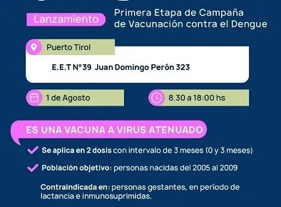 Desde hoy y hasta el 7 de agosto, se realizará la campaña de vacunación contra el dengue con la vacuna QDenga, dirigida a jóvenes nacidos entre 2005 y 2009. La vacuna, que se administrará en dos dosis con un intervalo de tres meses entre cada una, será de aplicación voluntaria.