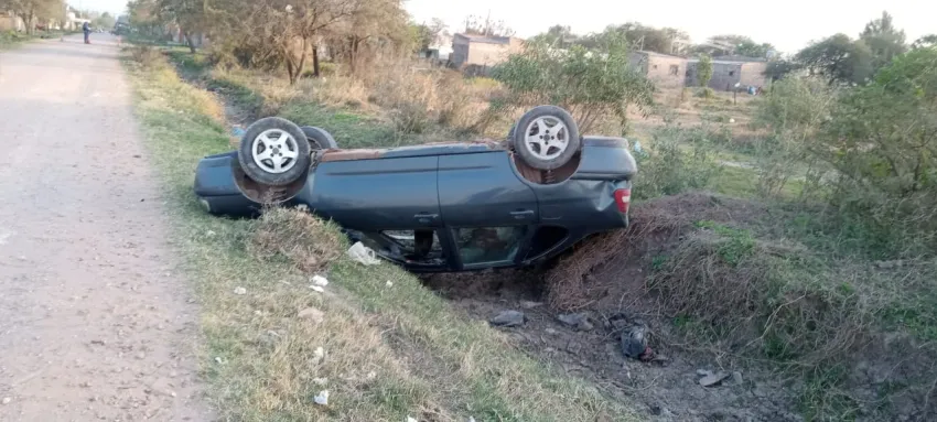 Agentes de la Comisaría Primera Villa Ángela, constaron que un automóvil Volkswagen Polo, Color Gris Oscuro, guiado por un hombre de 51 años por razones que se tratan de establecer pierde el control del vehículo y despista, por lo que vuelca y cae en una cuneta con sus cuatro ruedas hacia arriba.