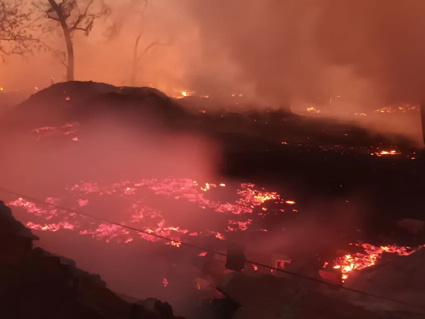 En la Ruta 16 y la calle 48 de la ciudad termal se produjo el jueves en horas de la tarde un incendio en un lugar donde se acopiaban tarimas de madera, rollizos de quebracho blanco y de pino.