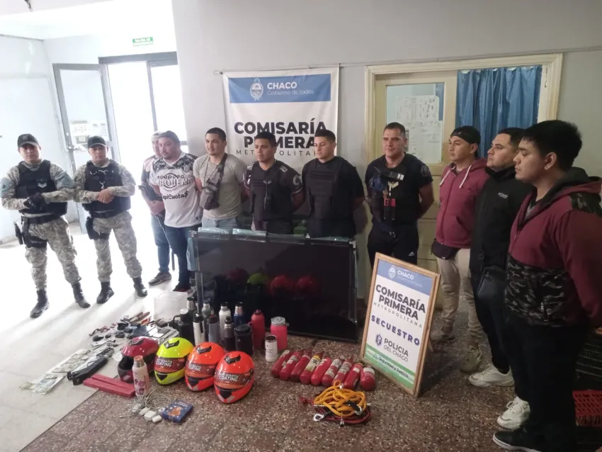 La Justicia ordenó un allanamiento en la vivienda del sospechoso donde se secuestró: 1 televisor Smart Tv. 65 pulgadas marca Philip, 4 teléfonos celulares de alta gama, 1 Tablet , 9 auriculares inalámbricos con cargador, 11 termos tipo Stanley, 4 cascos de seguridad, 9 matafuegos de 1 Kg, 1 linga, 1 llave Cruz, 1 cable pasa corriente, 2 pinzas, 3 juegos de llaves, 2 cuchillos para asado artesanal, 1 ganzúa, 1 pinza multifunción, 2 corta pluma, 1 Criquet, 2 topes, 3 cargadores de celular blanco, 9 pendrives en un llavero, 1 Memoria Micro, 1 mouse inalámbrico, 5 billetes de 1 Dólar, 1 billete de 5 Dólares, 1 billete de 1 Real, y 2 billetes de 1000 Pesos Chilenos.