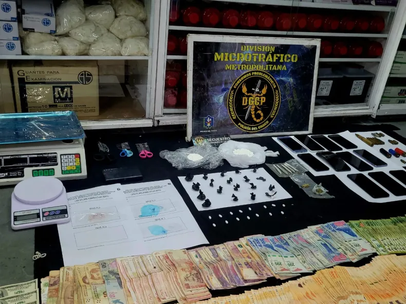 En una de las porciones del domicilio, dieron con el bunker, hallaron envoltorios con cocaína, dos de gran tamaño y otros 19 pequeños, listos para la venta. Cigarrillos artesanales y envoltorios con marihuana, recortes de polietileno, tijeras y cuchillos con restos de sustancias, tres balanzas electrónicas de precisión, cuadernos con anotaciones, 14 pastillas, 11 teléfonos celulares y una motocicleta Yamaha Cygnus 125cc. El peso total de cocaína fue de 125 gramos y marihuana 4 gramos.