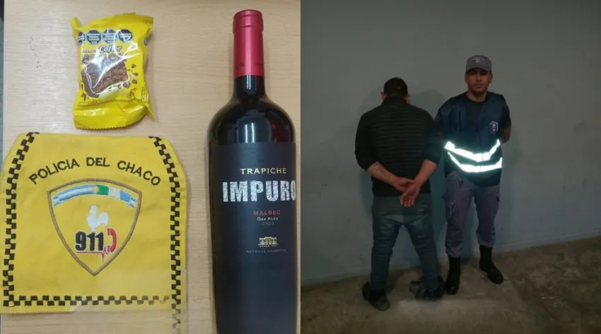 Al intervenir, los efectivos le secuestraron una botella de vino tinto y un alfajor de chocolate. Finalmente, fue trasladado hasta la Comisaría Segunda Resistencia por la causa "supuesto hurto".