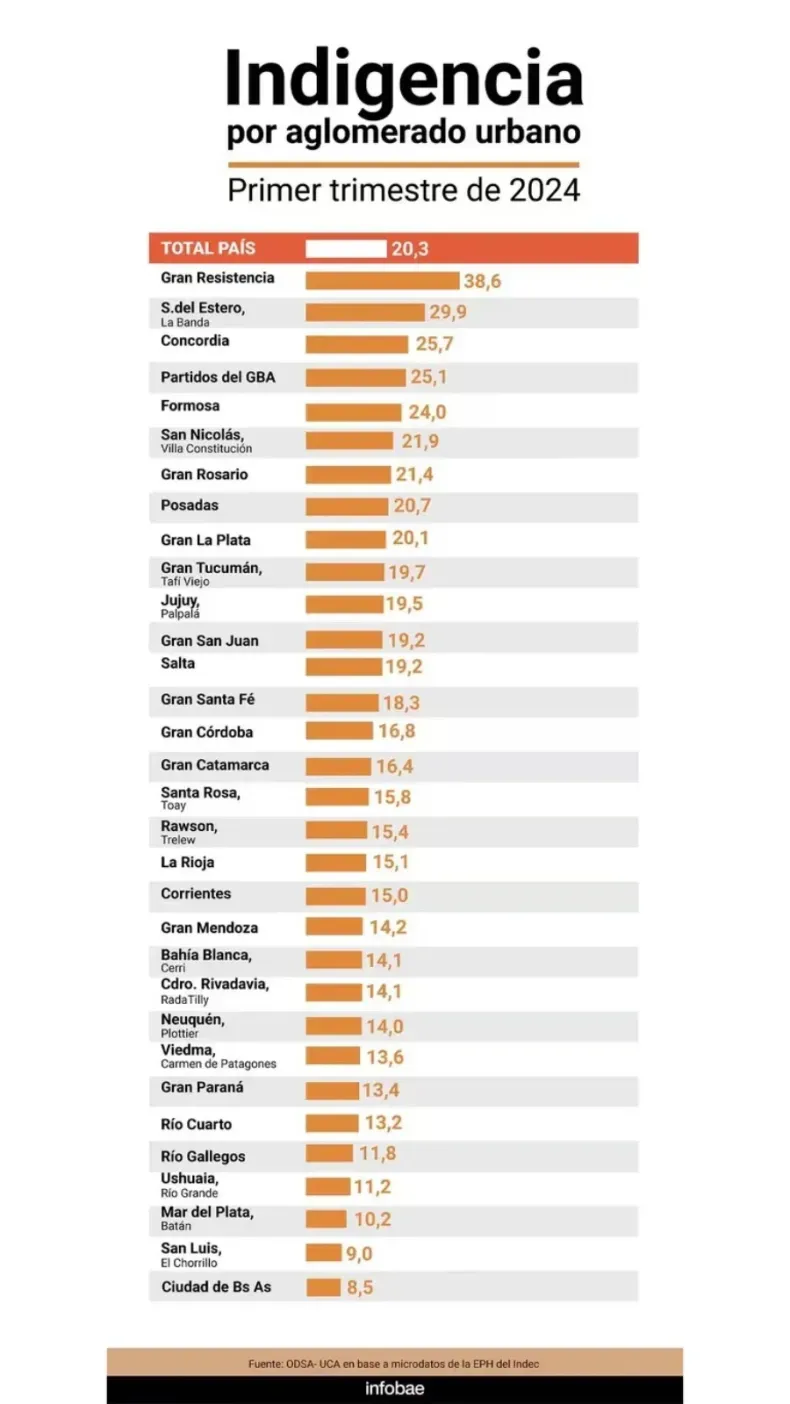 Las estimaciones de la UCA indicaron que la región del Gran Resistencia en nuestra provincia es la más pobre del país, con una tasa del 79,5%, mientras que la indigencia alcanza el 38,6% de la población.