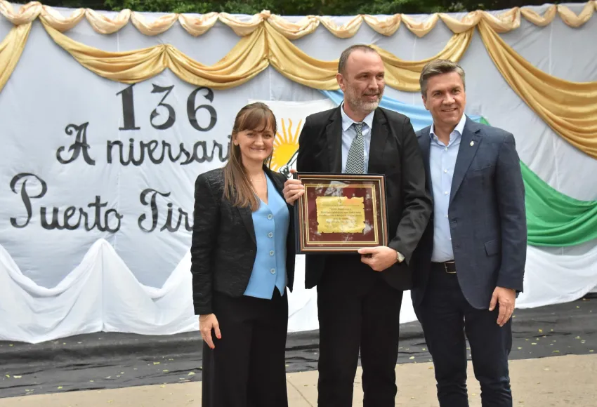 En el 136º aniversario de Puerto Tirol, el gobernador Leandro Zdero, junto al intendente Humberto De Pompert, inauguró cuadras de pavimento y entregó títulos de propiedad. "Es emocionante compartir estos 136 años de logro, vida y de una rica historia", aseguró el mandatario este martes en el acto central que se realizó en la Costanera Norte de la ciudad.