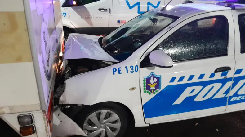 La Policía de la provincia tomó conocimiento de un accidente de tránsito entre un colectivo de línea urbana y un patrullero que estaba estacionado al resguardo de un camión sanitario de la fundación Conin. El hecho tuvo lugar en la calle Mitre al 50 aproximadamente, en frente de la Plaza 25 de Mayo, alrededor de las 5 de la mañana.
