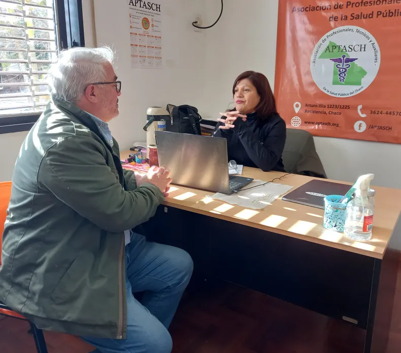 El legislador Samuel Vargas mantuvo un encuentro con Ramona López, Raquel Acuña y otras autoridades de la Asociación de Profesionales, Técnicos y Auxiliares de la Salud del Chaco (APTASCH) en la mañana de este jueves, con el objetivo de articular acciones para mejorar el sistema público de salud en la provincia.
