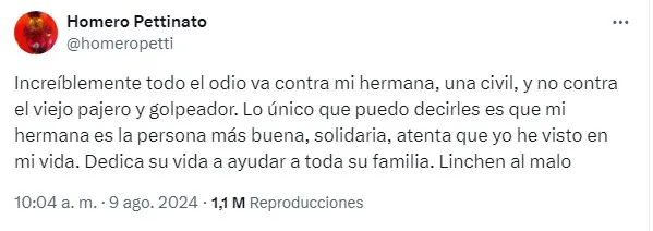 "Increíblemente todo el odio va contra mi hermana", dijo Homero Pettinato por los videos viralizados