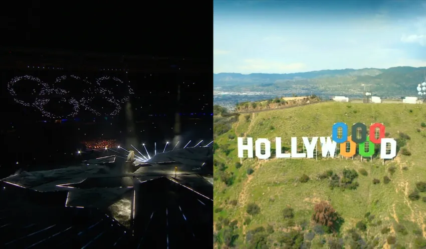 Le siguió el Himno Olímpico, que dio el puntapié a una gran presentación de la próxima sede olímpica: Los Ángeles 2028. El actor Tom Cruise, a lo "Misión Imposible" descendió del techo del Stade de France para retirar la bandera olímpica y llevarla, primero en moto y luego en avión, hasta Los Ángeles.
