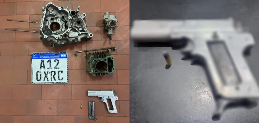 Posteriormente, se requisó un depósito ubicado en el patio, donde se encontró un carter de moto con pedido de secuestro activo, por la causa "Supuesto robo a mano armada". Asimismo, se halló una chapa patente y resto del rodado de la cual persiste el pedido.