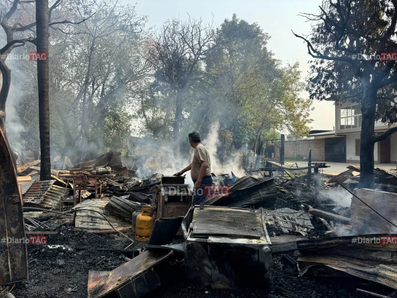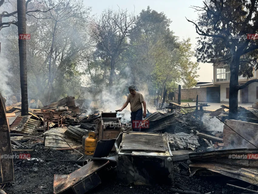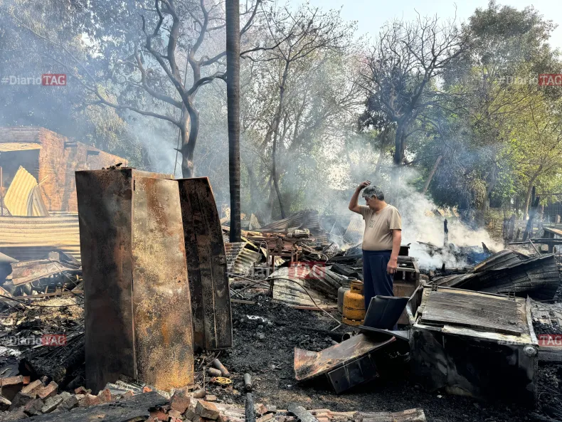 El trágico hecho tuvo lugar esta mañana en Villa Chica, precisamente en las calles Rioja y Andreani de la capital chaqueña, donde un hombre perdió todos sus bienes a raíz de un feroz incendio que destruyó su taller de carpintería y una gomería que funcionaba en el mismo en el lugar. "Se me fundió todo lo que tenía a mano, todo lo que tenía para trabajar, para hacer las cosas, para no pedirle a nadie nada", inició el damnificado.