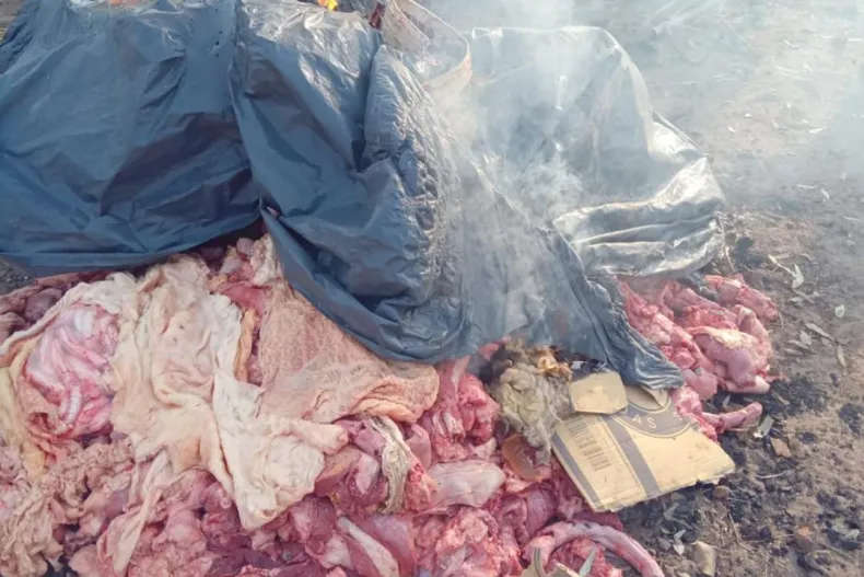 Secuestraron una camioneta que llevaba en la cajuela 120 kilos de carne no apta para consumo humano