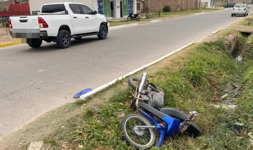 Los agentes de la Comisaría Primera de Villa Ángela tomaron conocimiento de un accidente de tránsito que ocurrió en dicha localidad alrededor de las 13 horas de este lunes. Colisionaron una camioneta y una moto en la calle Uruguay y Del Valle Iberlucea. Una mujer resultó herida.
